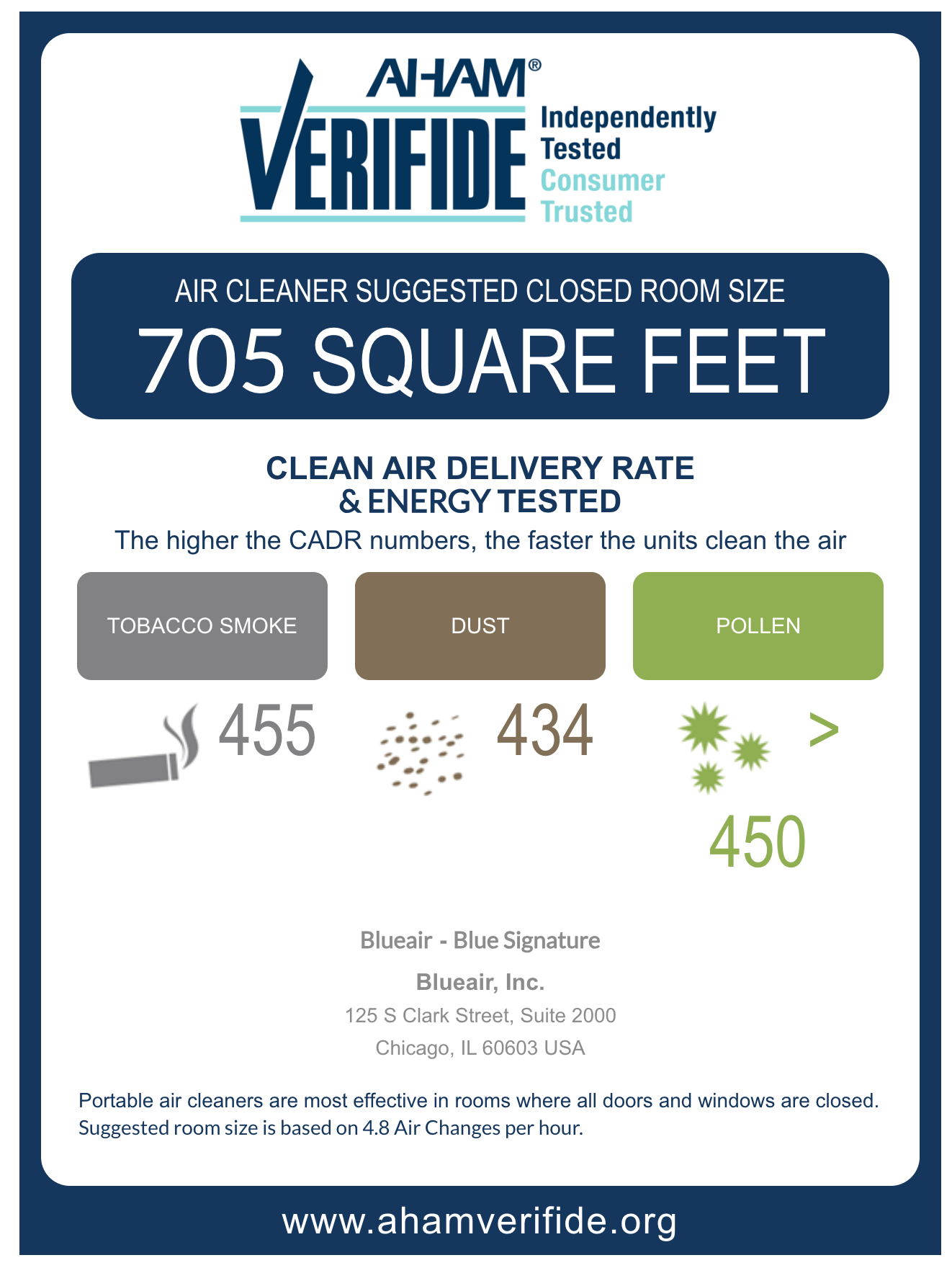 This makes the Blue Signature powerful enough to provide five air changes per hour in large rooms up to 600 sq. ft.